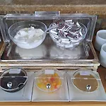İsteğe bağlı olarak kontinental kahvaltı servis edilir. Konuklar tesis bünyesindeki lounge barına davetlidir. Yunan mutfağı, 150 metre mesafedeki Villa Stasa Sea Bar restoranında servis edilmektedir.